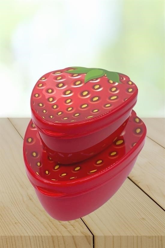 caselka® 2'li İç İçe Geçebilen Çilek Model Saklama ve Beslenme Kabı Seti (550 ml + 250 ml)