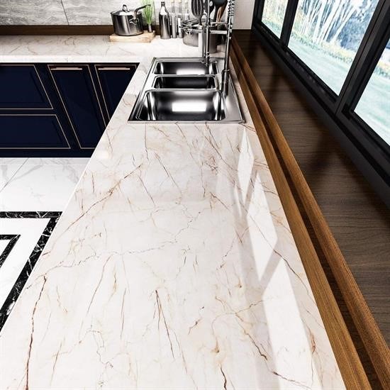 Mermer desenli kaplama duvar kağıdı yapışkanlı folyo ürünü su geçirmez ve ateş almaz özelliğe sahiptir