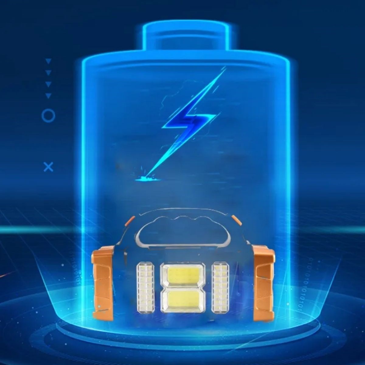 caselka® Solar ve USB Şarjlı LED + COB El Feneri | 1500 mAh Şarjlı Taşınabilir Çalışma Işığı-Su Geçirmez