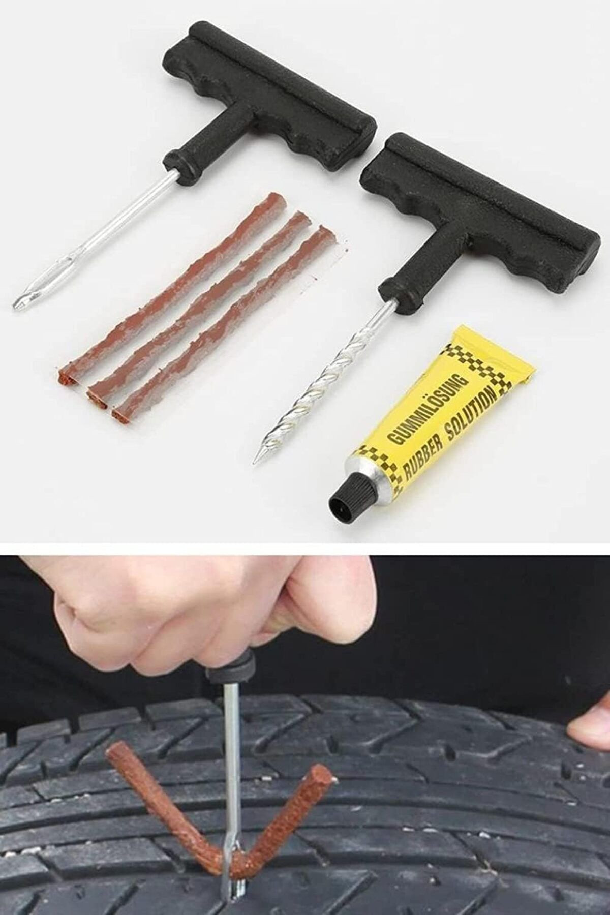 Lastik tamir fitil seti, lastik patlama ve delinmelerinde uygulanması en kolay ve uzun ömürlü lastik tamir araçlarından biridir.